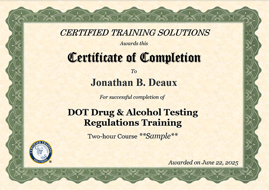 This online training course will assist supervisors, managers, and company officials in understanding DOT Drug & Alcohol Testing